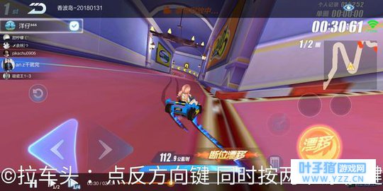 同时按住漂移键,点两下方向键。注意点两次方向键时,第一次按 时间稍长 第二次按 稍短,练习多几次,很容易找到窍门。