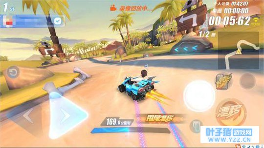 然后到这里,漂移双喷快速使用,点完就可以立马漂移了,因为这个路段短(其实这两个弯道考验的是贴墙技术)