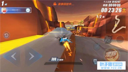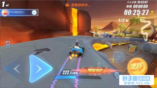 连续弯道的第一个弯道用甩尾,接下来的弯道也是用甩尾,甩尾过后接CWW喷!这个操作会快一些,也比新手的简单操作上多了一个氮气!