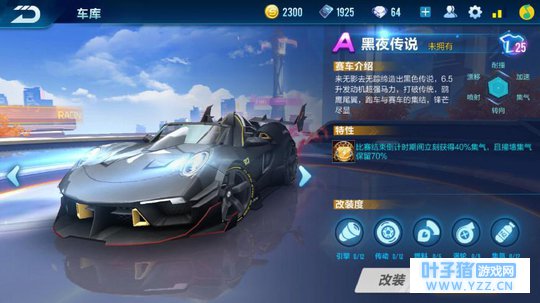 特效一般,颜值一般,就着豪车的外表,却没有A车的性能,不管是排位还是平常,性能都不是很优秀一个车,出这个车的活动还是刚刚公测,所以拥有的玩家不是那么很多,很稀有的一个A车。 TOP2——黑夜传说