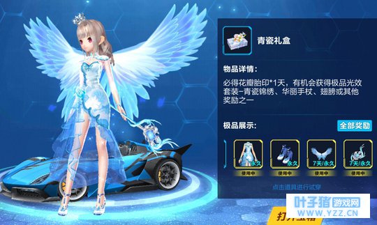 第二位 青瓷翅膀 刚更新的青瓷礼盒专属品,整体看起来很舒服,即便是没有开到套装里的其他衣服也可以单穿,更重要的是:它只需要用点券购买!尴尬的是几率不大,比9个紫晶能量还贵,等于一次花掉6-10个A车碎片。30天的猎鹰能开七次,开不开得到这个翅膀就看人品了。