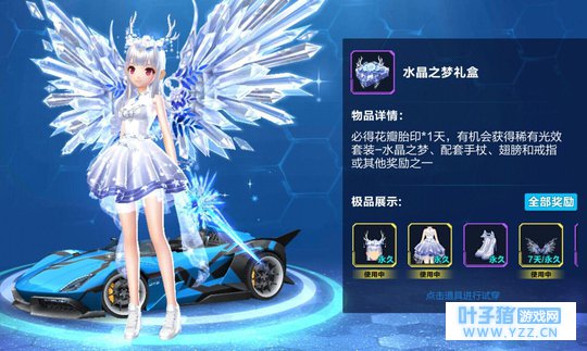 第三位 水晶之梦翅膀 水晶之梦礼盒专属品,单穿效果一般不算惊艳,但是换上套装的衣服后效果爆炸。Aggro君为了它不惜吃了一周泡面,结果还是被惨淡的现实击败了,几十个盒子只开到了两个并不想要的戒指,目前还有8天这个礼盒就下架了。
