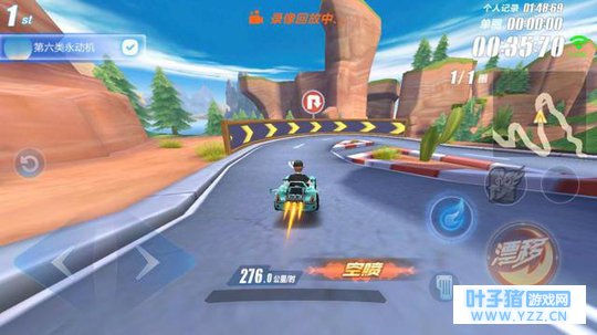 首先完美起步+断位漂移衔接双喷进行提速