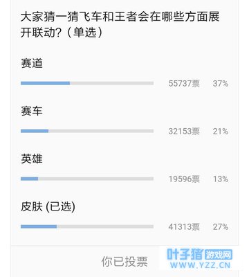 这四种猜想玩家们也进行了投票,新赛道票数最多达到37%,其次是皮肤27%,赛车21%,英雄13%。