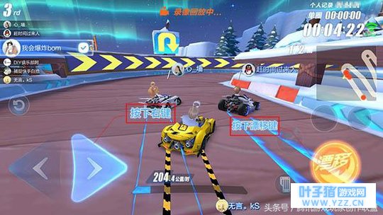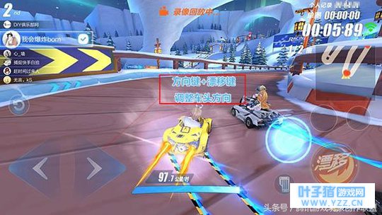 第三步:按下右(左)键加漂移键拉车头,确保出弯后方向正确。