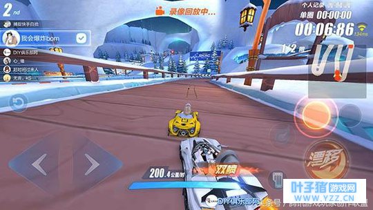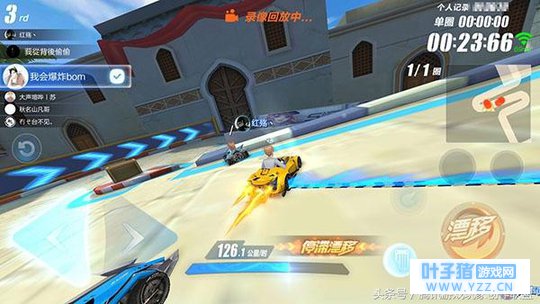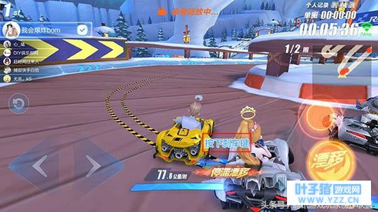 分析:这种情况就不是将停滞漂移当作弥补过早入弯的手段了,而是利用停滞漂移尽可能近的靠近内弯。车手在入弯前既可以使用氮气提高自身的入弯速度,又可以提前进行漂移,在自身判断可能会擦碰到内弯时轻点刹车键过弯。这样做不仅能确保自己不会过弯失误,而且还能使每个弯道都十分贴边,十分适合在近道及领跑的情况下使用。 3、避让碰撞,从外道超车