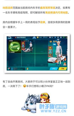 首先是新增《自由开黑》:意思是大家可以邀请不同等级驾照的朋友或者附近的人一起竞速,这样一来可以解决很多朋友由于驾照过高或过低而无法与朋友开黑的尴尬局面,还有就是其他玩家需要被邀请才能进入(不会因为被系统随机匹配其他玩家而导致开黑不愉快)。------这点非常人性化。其中开黑是根据玩家中最高驾照而定,也就是说如果有一个朋友是高级驾照,那么高级频道的地图也会解锁,驾照等级低的玩家也可以体验高级赛道。比赛结束还会根据排名办法勋章,谁弱谁强勋章作证,准备好队友一起驰骋吧!