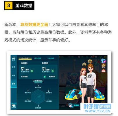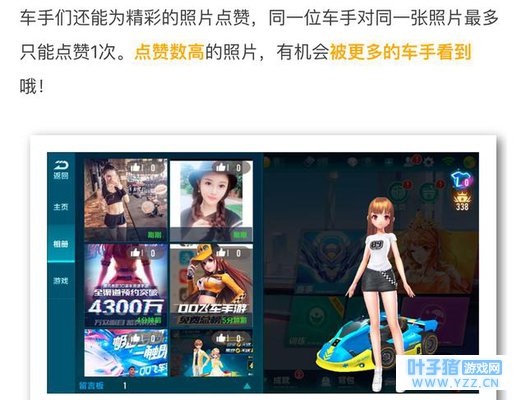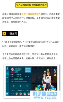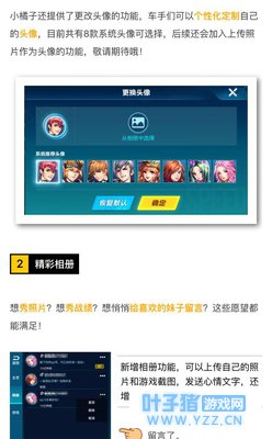新增头像更换功能,八款头像供玩家选择,新增相册功能(玩家能点赞),还能发心情,给玩家留言(网友吐槽:难道这就是传说中的飞车空间?)