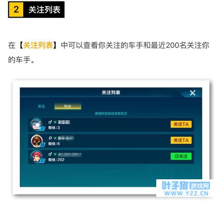 最后这个是《关注列表》--玩家可以在这查看你关注的玩家和200个最近关注你的玩家。 这次给大家介绍的就是8号更新的内容,可以说是有利有弊吧,有的网友说这个也挺好的,玩法多了,跑累了也可以看看其他的功能。也有网友表示这除了增加游戏内存其他一点作用也没有(再次为16G手机内存玩家表示痛心),可以选择不更新吗?更有网友表示:衷心希望能出一个只能跑图的精简版飞车! 关于2月8号这一波更新,各位怎么看? |