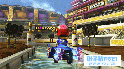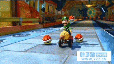《马里奥赛车》专注于道具赛,系列发展到现在,大开脑洞的道具、千奇百怪的赛道都已十分完善,如今的画风是这样的。