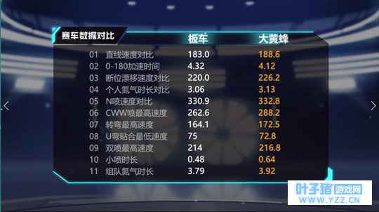 抓地较稳,平跑速度能与A车相媲美了并且小喷强劲,喷射时长,集气还短。 大黄蜂改装方案 大黄蜂优先改装引擎装置,来提升直线平跑速度,再升级传动来提高基础动力,使提速更快,其次就是集氮和燃料,集氮先选择左边的霍森集氮,而燃料是红炎燃料 大黄蜂作为B车之王,有着非常出众的数据及性能。但是人无完人,车无完车,我们的大黄蜂的性能还是有很大提高空间的。毫不夸张的说,改装后的大黄蜂绝对可以媲美A车。 既然大黄蜂的优势大家了解的差不多了,那么我们来了解下大黄蜂的劣势。 大黄蜂比较适合弯道较多,难度较高的地图,例如 秋名山、 十一城、 秋之物语、侏罗纪公园 等较复杂的,而例如老街管道、中国城、冰川滑雪场等这些长直道,多加速道地图就显得没有那么多优势。那么大黄蜂较其他直道型B车相比就差一些了。