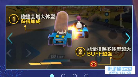 此次更新的新玩法为《欢乐巨人赛》,新玩法中,赛车发生碰撞体积就会变大,变身巨人的玩家可以碾压体积较小的玩家,被压到的然会变成纸片。