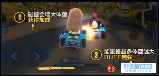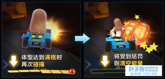 每个玩家有6个能量格,每每撞击一次就会获得一格能量,获得强大BUFF——增大体型。