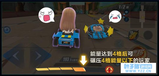 当能量格打到4格的时候,可以碾压4格以下的玩家。被碾压的玩家会被压扁,并带有短暂的减速效果。