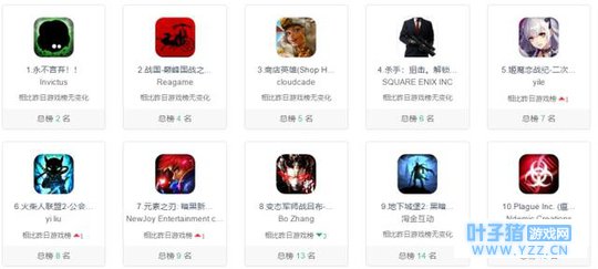 近两周,付费榜均呈现出了两个特点,第一,榜单呈现固化现象,品质游戏地位稳固;第二,新游数量减少并且很难突围品质游戏的包围圈。本周亦如此,目前依然是品质游戏《永不言弃!!》位居榜首,《战国》排名第2,《商店英雄》排名第3,《杀手:狙击》排名第4,《姬魔恋战纪》排名第5。排除上周的刷榜游戏,本周游戏排名与上周无异。另外,本周TOP10之内并无休闲游戏的身影。