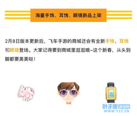 10:海量新品手饰、耳饰、眼镜上架商城!2月8号更新-新手饰、耳饰、眼镜齐上架,尽情挑选吧! 以上10点就是2月8号新版本更新的部分内容,两台赛车,多款装扮,有你喜欢的吗?这一波更新无疑是氪金玩家的大福利,但是我们的零元党也一样能体验部分活动,B车紫爵以及一些装扮都是点卷可购买,关键是点卷你准备好了吗? 关于这次的更新,有没有更新到你想要的内容呢?可以留言你的想法哦,喜欢请关注我吧!我们一起交流! |