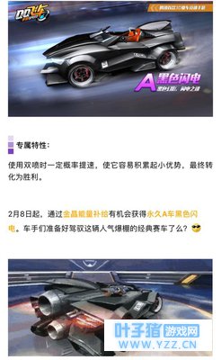 1:A车黑色闪电!金晶能量补给加入新赛车永久A车黑色闪电!(氪金玩家福利)