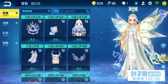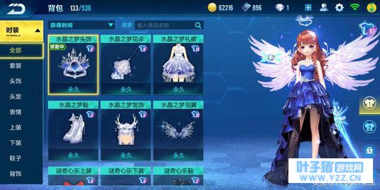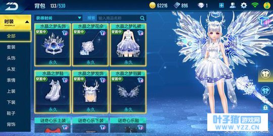 该玩家除了有变色天启之外,还有3套绝版套装。看着非常好看。这套水晶之梦也是目前在商店上最好看的一款,全水晶的特效,手饰是一般冰雪雨伞,如果能有这套装确实是很好运气了。
