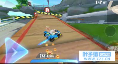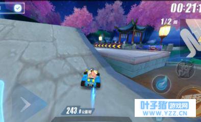 这图应该看得懂什么意思吧,把车开到加速带,右转(别漂移,漂移减速严重)!具体解释就是,直线比曲线的路径短!上坡后距离加长,还有一个高空下落,下面一样可以加速,这不是更快了吗? 龙门新春