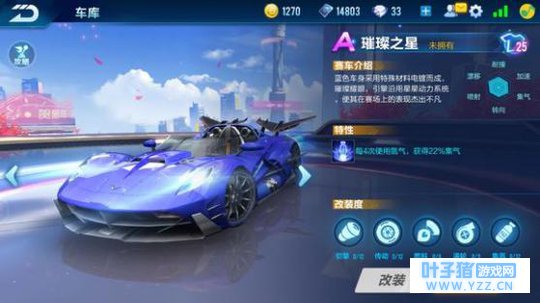 第三款是璀璨之星,这款赛车非常适合连喷技术比较好的玩家身上,它的特性是每四次使用氮气就可以获得22%的集气,也就是说对于一些漂移技术非常好的玩家而言,璀璨之星的每4次之后的氮气提升,更有效果的提升了这款赛车的上限。
