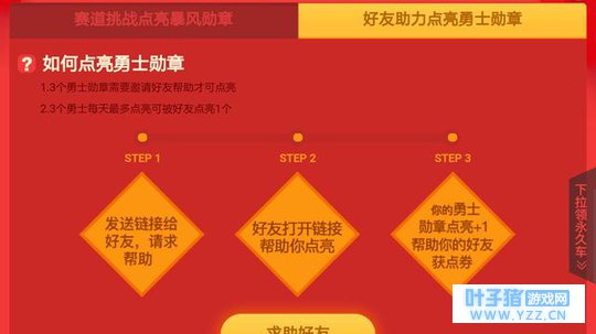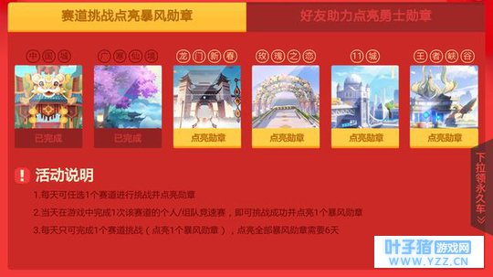 6个暴风勋章(每天点亮一个),每天游戏跑一张图,6天点亮6个暴风勋章。其中3天邀请朋友再点3个勇士勋章(每天点亮一个)。