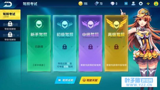 玩法六:驾照考试 《QQ飞车手游》中的驾照考试可不是咱们实际生活中那想想就让人头疼的考驾照。《QQ飞车手游》驾照考试总共分为4级,每级驾照对应相应的段位,如果你顺利取得相应段位后,你还可以参加更高等级驾照考试,同时每一级驾照考试后你都可以解锁新地图,体验前所未有的乐趣。这种玩法充满了游戏乐趣,是许多玩家最钟爱的玩法之一。
