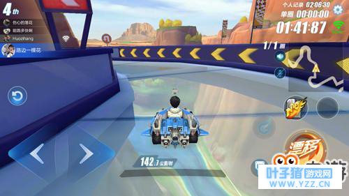 疑难点三:如何从高处降落 除了以上的难点之外,美洲大峡谷还有一个难点,那就是从高处降落。一般小伙伴,在从高处降落之后都会存在两个问题,其一是容易失去方向,其二是不知道在降落之前该进行怎样的操作。其实这两个问题非常简单,在美洲大峡谷赛道高处降落之后,小伙伴可以使用小喷,因为氮气的速度提升太快,不利于降落之后的过弯操作。在降落之后,小伙伴可以操控赛车向右侧漂移,因为这样可以快速的调整赛车的方向,让接下来的征程变得更加轻松。