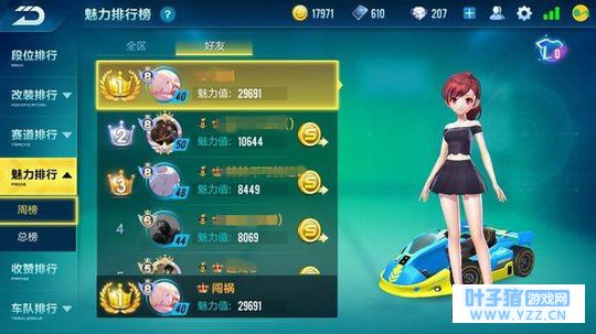 虽然一口气怼到了贵族V8,但是一辆好车都没有,花光了钻石,身上也只有一套基础装扮。大家可以看到她的魅力值已经达到了两万九,位列好友榜第一,但着装度却还是0。可谓是最惨的玩家了。