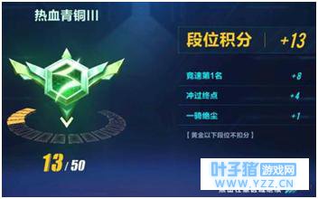 热血青铜:顾名思义,这个段位的玩家心里都有一股热血。属于飞车手游中的起步阶段,只懂得飞车中的基础技巧,对于高端操作一改不知。而官方为了不打击这个段位的玩家经常会在这个段位的排位赛中加1~5个AI玩家(机器人)。