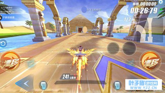 与此同时,借助于技术团队的高性能优化,每条赛道的风情元素绝不重样!比如在赛道“法老金字塔”中,驱车驾驶的时候还能感受到漫天风沙,每每这个时候,玩家都能切身感受到“时光沧桑,屈指千年”那种饱满的沧桑感!并且,不同的赛道加入了不同的内景设置,比如“森林类跑道”沿途你会看到各种野生动物,“城镇类赛道”沿途你会看到各种高大建筑。绝不是贴图那么简单,好多是可以互动的呢!(好几次小编疾驰冲过水面,水珠溅了我一手机屏幕,我都本能的擦了一下!)