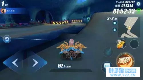 进左边的近道,差不多快到出口的时候漂移,注意漂移别撞墙了,很关键,能飘出去最好,没漂好记得快速出弯,不能撞。然后在下一个弯道口集满一个氮气冲刺。 |