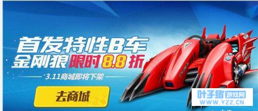 活动时间:3月9日至3月11日 狱火哮天礼盒即将下架,3月9日至3月11日(最后3天)8.8折。 【好礼三:特性B车金刚狼最后三天8.8折】