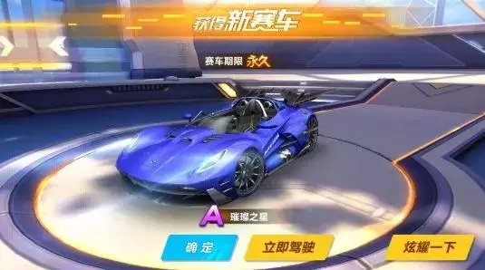 现在唯一上线的A车就是专为张杰设计的璀璨之星,只要在商城购买璀璨之星礼盒,就有可能开出永久的璀璨之星,现在应该有不少土豪已经抽到这款车了吧,大概是买了200多的盒子,才抽到一辆永久车。折合人民币大概200多吧,这让我们这些平民,只能默默叹气了。