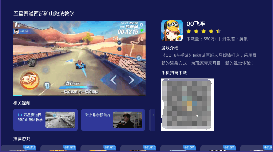 为了能更方便用户,当贝市场在介绍手游的页面将提供手游的下载二维码及游戏的相关视频,在视频中可观看当贝市场为玩家提供的玩法解析,可边看边玩,轻松通关拿第一。以QQ飞车为例,QQ飞车手游在玩法上传承了端游的操作,如竞速赛、道具赛、排位赛、剧情模式等,还有诸多道具帮助玩家在比赛过程中增加获胜几率。 当贝市场一直深受电视用户信赖,不止是应用商店中安全无广告的应用下载包,还兼具了软件管理下载的作用。当贝市场为更加便捷的吸引用户紧跟热门手游潮流,同时帮助游戏开发者增加曝光量和传播速度,提高玩家的兴趣,调动玩家积极性。