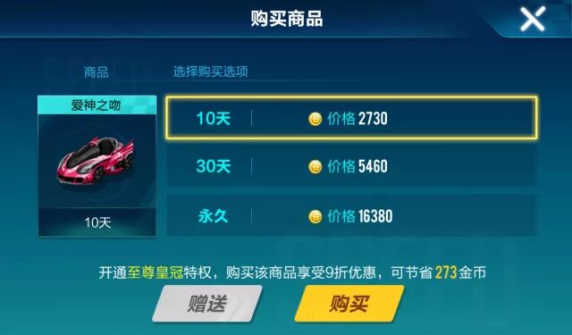 爱神之心 & 爱神之吻两辆情侣赛车,目前都可以在 商城内使用金币购买 获得。
