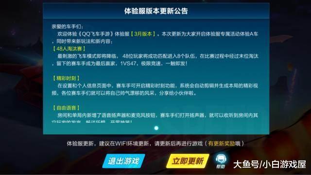 首先第一个比较重要的信息!就是新开了一个48人淘汰赛的模式,末位淘汰制,1V47,站到最后的人才能拿走比赛的胜利果实!这一个玩法有一种跟跑方程式赛车的感觉啊!反正小白还是挺期待的! 随后就是又精彩时刻的录制了,自由语音这下真的是可以有语音了!还有碰撞优化,这个大家不要太期待,碰撞依旧在,只不过是变换了其它形式而已!测试服的内容已经给大家看了,但是有不安分的网友却透露在23号,霸天虎将会正式登陆正式服?