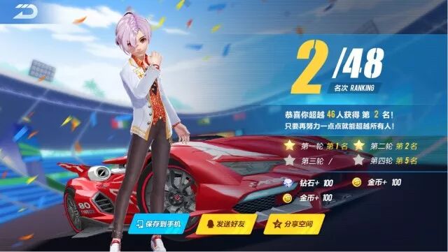 能在这样激烈的比赛中坚持到最后可不容易,小橘子特地给获得 最后一轮前三名 的车手准备了荣耀的分享页面!