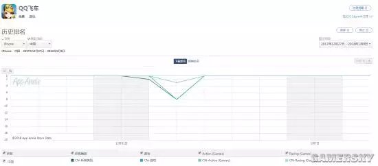 《QQ飞车手游》2017年12月27日至2018年1月9日下载排名