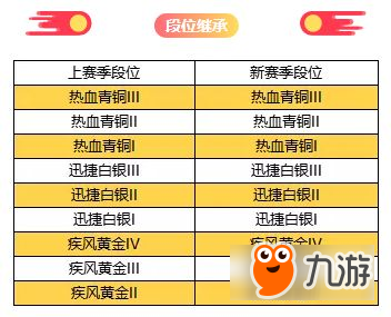 S3段位继承与上一赛季一样,但是新S3段位继承的积分方式有些变化。 在新段位会根据上赛季段位和新赛季初始段位,直接获得10-30个排位赛积分,不用担心输1场就会掉级啦。 赛季奖励需要的冲线场次从50/100/120降低为30/60/100。 |