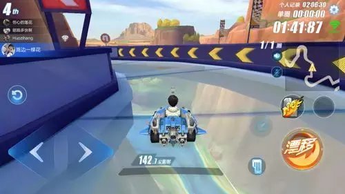 疑难点三:如何从高处降落 除了以上的难点之外,美洲大峡谷还有一个难点,那就是从高处降落。一般小伙伴,在从高处降落之后都会存在两个问题,其一是容易失去方向,其二是不知道在降落之前该进行怎样的操作。其实这两个问题非常简单,在美洲大峡谷赛道高处降落之后,小伙伴可以使用小喷,因为氮气的速度提升太快,不利于降落之后的过弯操作。在降落之后,小伙伴可以操控赛车向右侧漂移,因为这样可以快速的调整赛车的方向,让接下来的征程变得更加轻松。