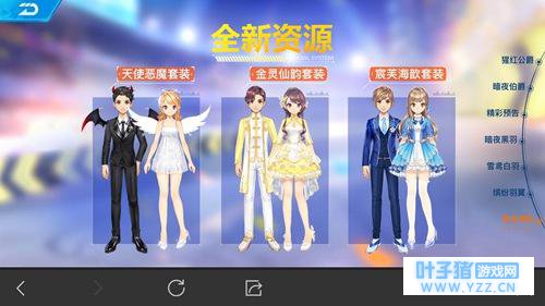 天使恶魔套装、金灵仙韵套装、宸芙海歆套装 三套情侣服饰,分别展现了各自不同的风格。
