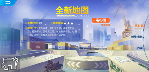 上线时间: 3月 地图星级: ★★★ 地图介绍: 金色沙滩,享阳光之旅,涟漪浪花点点;碧波椰林,游幅员辽阔,体验独具特色;万象风光,集风景秀丽,闪耀星光熠熠。心随我造,开始一场极速风光的洛杉矶之旅。