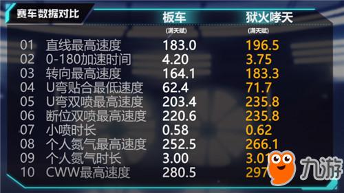 改装优先级: 传动>集氮>引擎>燃料>涡轮 作为一辆极品A车,狱火哮天的综合属性堪称完美,可以说是毫无短板,而改装方面更是高人一等,引擎最高24,涡轮更是高达30,不过不要担心,其实只是分支比较多而已,而且每一条分支的改装属性都相当不错,需要玩家根据自己的操作习惯做出选择,推荐优先点满引擎提升极限速度,推荐中间或是右侧的分支,提升更大,随后点满集氮来提升集气效率,使氮气的利用率更高,漂移手感更好,随后再来点满传动增加基础动力,也就是加速度,最后再依次点满燃料和涡轮提升喷射性能,满改的狱火哮天,绝对是你驰骋排位赛的一辆极品神器。 使用心得及注意事项 狱火哮天拥有非常优秀的耐撞和转向能力,非常适合弯道复杂的高难度地图,因为拥有碰撞后保留氮气和基础动力加速的特性,在失误后也有机会扭转劣势。需要注意的是因为狱火哮天的集气能力相对其他属性有些不足,所以对玩家的漂移手法有更高的要求。 |