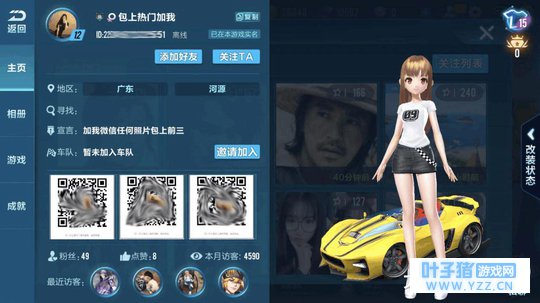 如上图所示,不少服务器热门推送的前几名都挂上了周星驰不同时期的照片,原本以为只是玩家间的恶作剧。但点开这些照片后,这其中的利益链才浮出水面。在这些常期霸榜的玩家宣言及个人相册里,全部都是个人微信号二维码以及“加微信包上热门”的广告语。