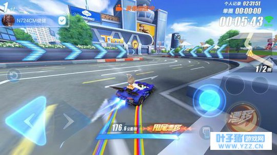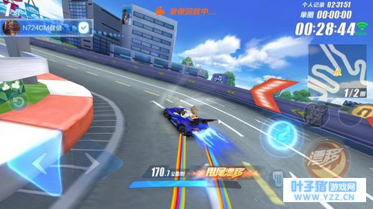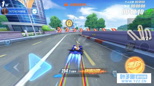 11城难点分析: 11城地图是一个三星难度的跑道,其实整体难度并不是很大,只是想要在一定的时间内完成是不太容易的。当前版本,赛道之王的最高速度已经到了2分10秒以内,可以说是非常恐怖的速度了,这也全仰仗了新技术的支撑。 开局有第一个弯是锯齿状的,新手刚接触的时候应该会比较烦,这里选择一个小飘加速即可,千万不可以在这里大漂移,不然撞墙或者被其他玩家撞停的概率是百分之百。然后,是一个很好过的直角弯直接甩尾。如果一切顺利的话,现在手里应该至少捏了一个氮气了。