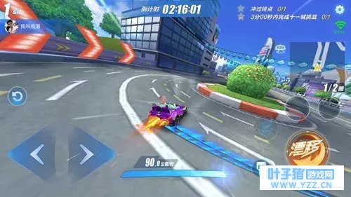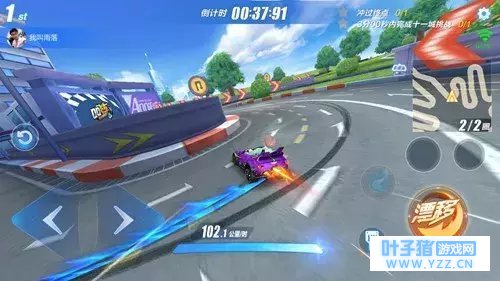 我们在开紫爵的时候,遇到这种大弯道,那么可以直接使用氮气喷射加速,然后提前转向漂移,如果漂移距离不够,可以在中途放开双手,等到车身过了弯道再继续按住漂移,这种小空隙的处理,能让车辆更快速和轻松的通过弯道。
