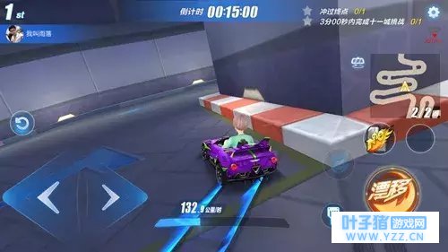 当遇到大弯道前有捷径的时候,想要走捷径,那么就不要按氮气喷射,用平跑漂移来通关捷径。因为紫爵的漂移惯性太大,如果捷径也是用氮气喷射,那么很难精准控制车辆的漂移位置,撞墙概率非常高,不过使用平跑漂移来通过捷径,那么速度慢一些,漂移控制也就精准了很多。