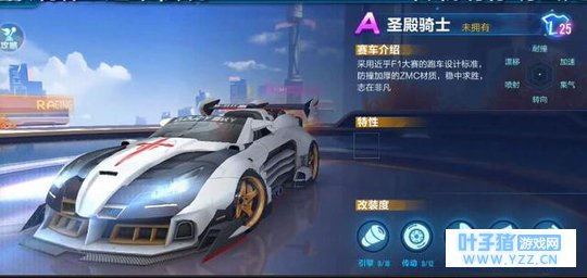 还有这款A车圣殿骑士,一样是被隐藏属性了,颜值还算一般,根据介绍是速度和耐撞的速度型赛车!