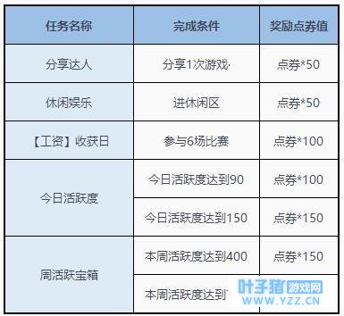 以上任务完成所需时间一共在30-40分钟左右,领取周活跃度宝箱的当天可以获取1270点券,剩余的六天每天可以获取820点券。点券积少成多,大家一起努力吧! |