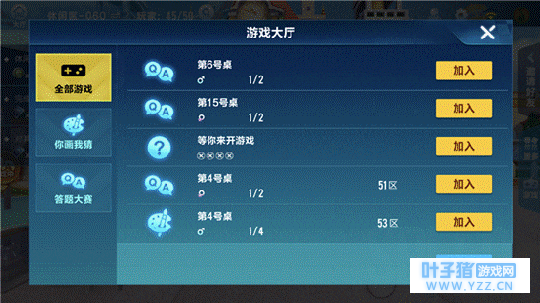 第二,在休闲区完成一局小游戏。在休闲区界面右边点开游戏,你画我猜或答题大赛选择任意一个玩一局即可获得30点券!既能玩游戏,又可以获得点券,简直不要太美!